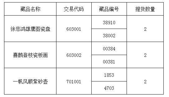 應(yīng)投資人會員申請,經(jīng)本交易所對申請人信息核實(shí)以及出庫藏品復(fù)驗(yàn)后,提貨藏品已完成發(fā)貨,提醒廣大投資者注意盤面藏品數(shù)量變化。提貨藏品信息如下:
