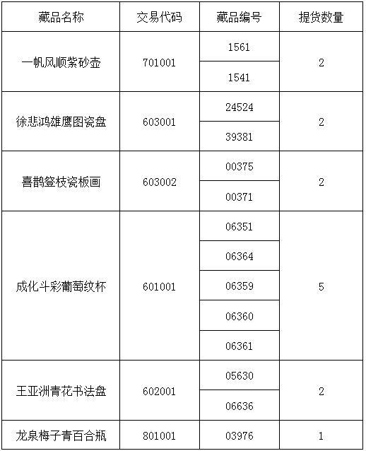 2017017關(guān)于交易藏品《一帆風(fēng)順紫砂壺》等提貨公告