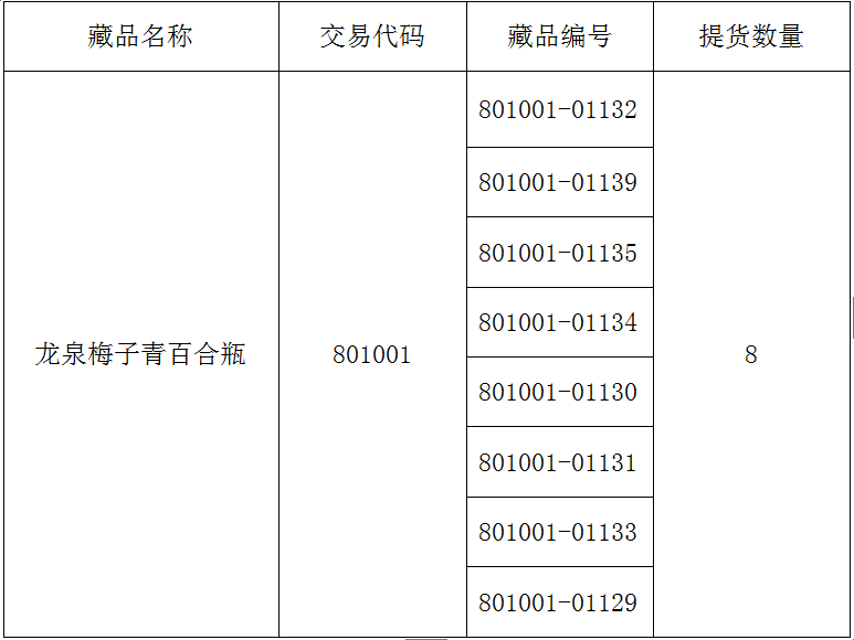 應投資人會員申請,經(jīng)本交易所對申請人信息核實以及出庫藏品復驗后,提貨藏品已完成發(fā)貨,提醒廣大投資者注意盤面藏品數(shù)量變化。提貨藏品信息如下: